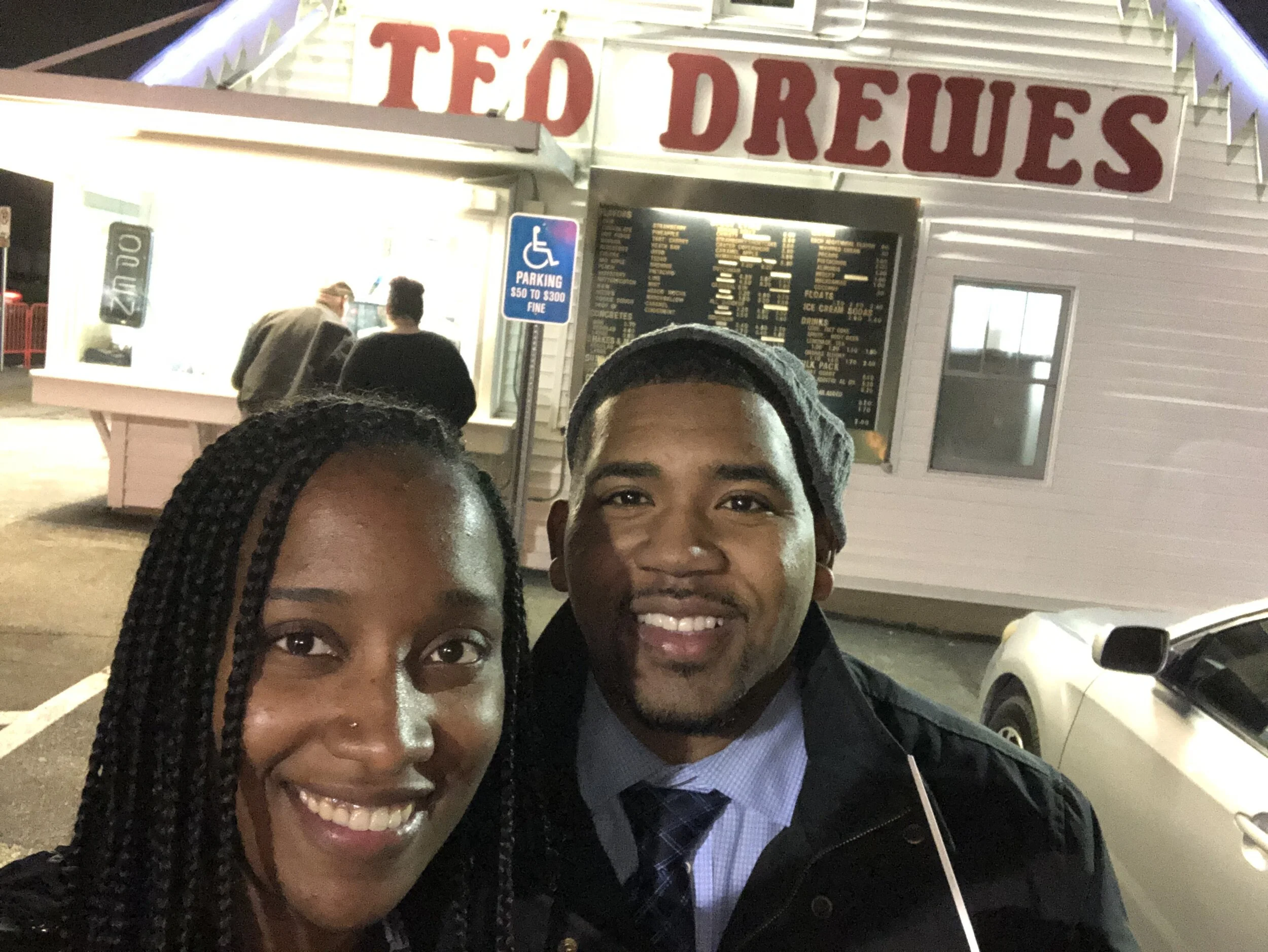 We head down to the car and as I walk to the passenger’s side of the car he instructs me that I’ll be the one driving. I’m a little confused as to why he would have me drive but I just follow along and get in the driver’s seat. He then gets in the back seat of the car. I turn around and jokingly say “This ain’t no Uber!” and he just ignores me and instructs me to drive. As I’m following his directions I’m quietly trying to guess where we could be going at 1:00 in the morning. There aren’t many places open at that time of night. Before I have a chance to come up with something the music starts playing… “Hop into my spaceship coupe, there’s only room for two...Me and you!” and if you read our “How We Met” story, you should immediately know, like I did, where we were headed. IHOP! Carl was recreating the day we met. So thoughtful and cute! So even though IHOP was open, we didn’t go in and eat because I had Chipotle, duh! But we did take a few pictures in front of the restaurant.
